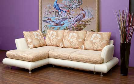 Комплектация: диван с оттоманкой. Особенность: небольшой размер модели; широкое ровное спальное место и вместительный короб для белья. Каркас: деревянный массив. Механизм трансформации: Дельфин. Наполнитель: формованный пенополиуретан, в подушках спины — синтепух. Съемные чехлы: подушки спины. Обивка: рогожка, шенилл, замша, велюр. Отделка: Опоры металлические или деревянные (3 цвета).